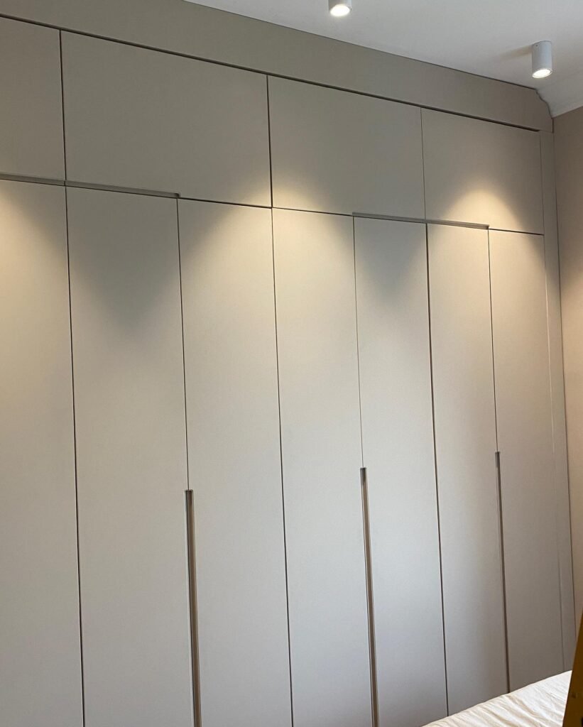 ARMADIO ANGOLARE LACCATO CON ANTE IN LISTELLARE